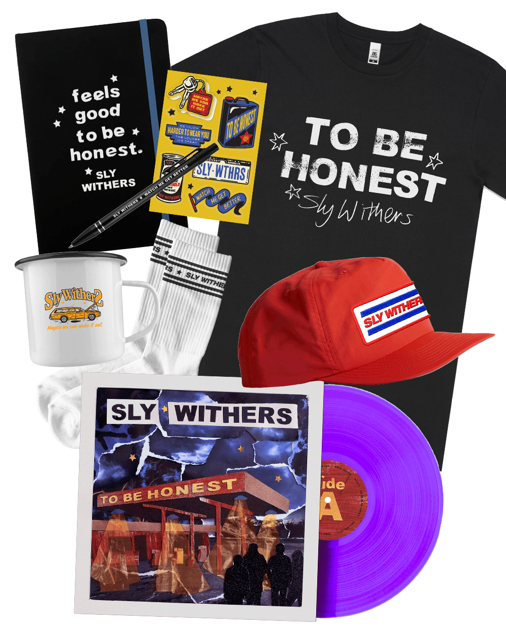 Includes first pressing of Sly Withers latest record 'To Be Honest' on vinyl LP, CD or digital.